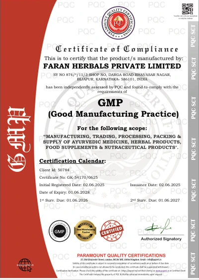 The GMP (Good Manufacturing Practices) Certificate ensures that products are consistently produced and controlled according to quality standards. It is crucial in minimizing risks involved in pharmaceutical production and ensures the safety, efficacy, and quality of medicines. GMP certification is recognized globally as a benchmark for manufacturing practices in the pharmaceutical industry.